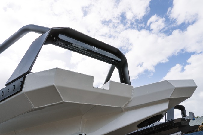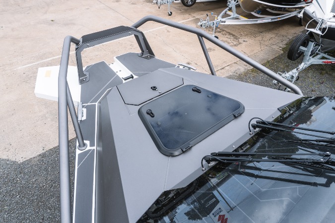 The 2350 Supercab debuts a new hull, which has been subjected to extensive hydrodynamic and on-water testing. Stabicraft has increased the keel angle and tapered the forward sealed chambers upwards, giving a finer entry. This has allowed the hull to better navigate rough water by dispersing the water further back under the hull, allowing a very dry ride.