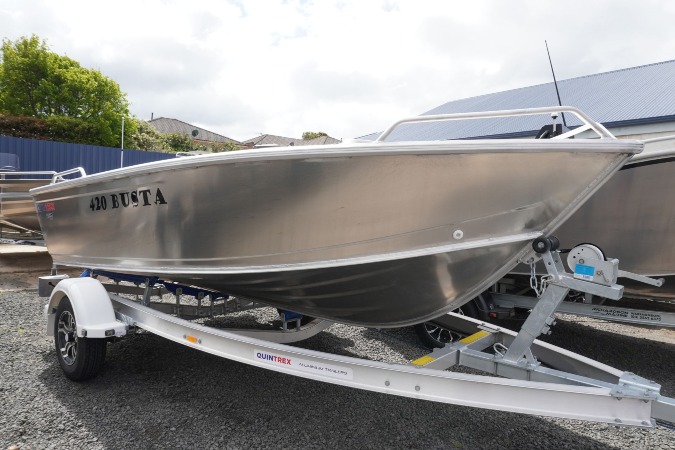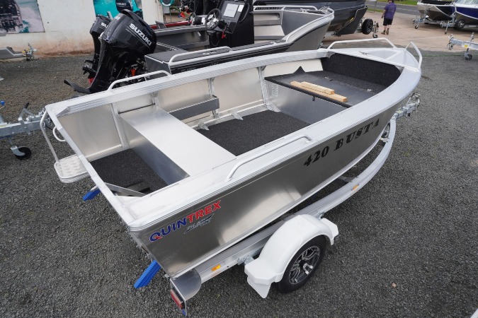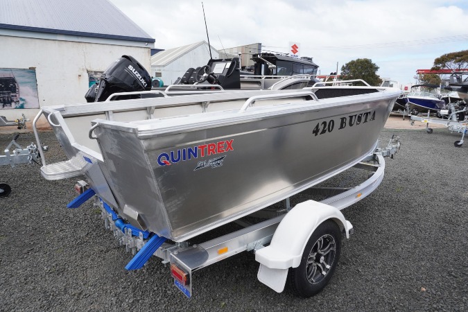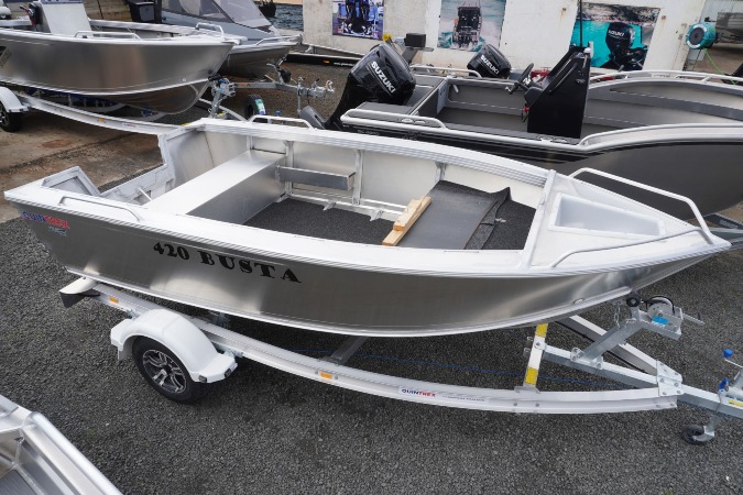 The Busta is an excellent mid sized tinny, more than capable enough for some inshore and bay fishing with big, wide decks and 40hp of Suzuki grunt on the rear. The casting deck, flat floor and storage options also make it an excellent option for those lure casting in the lakes and rivers. Side rails allow provisions for mounting all kinds of accessories including rod holders, sounders or lights. This one is also fitted with the popular side deck upgrade for mounting accessories. Includes a Telwater 1098 braked aluminium trailer, as well as a Suzuki DF40 tiller steer outboard.