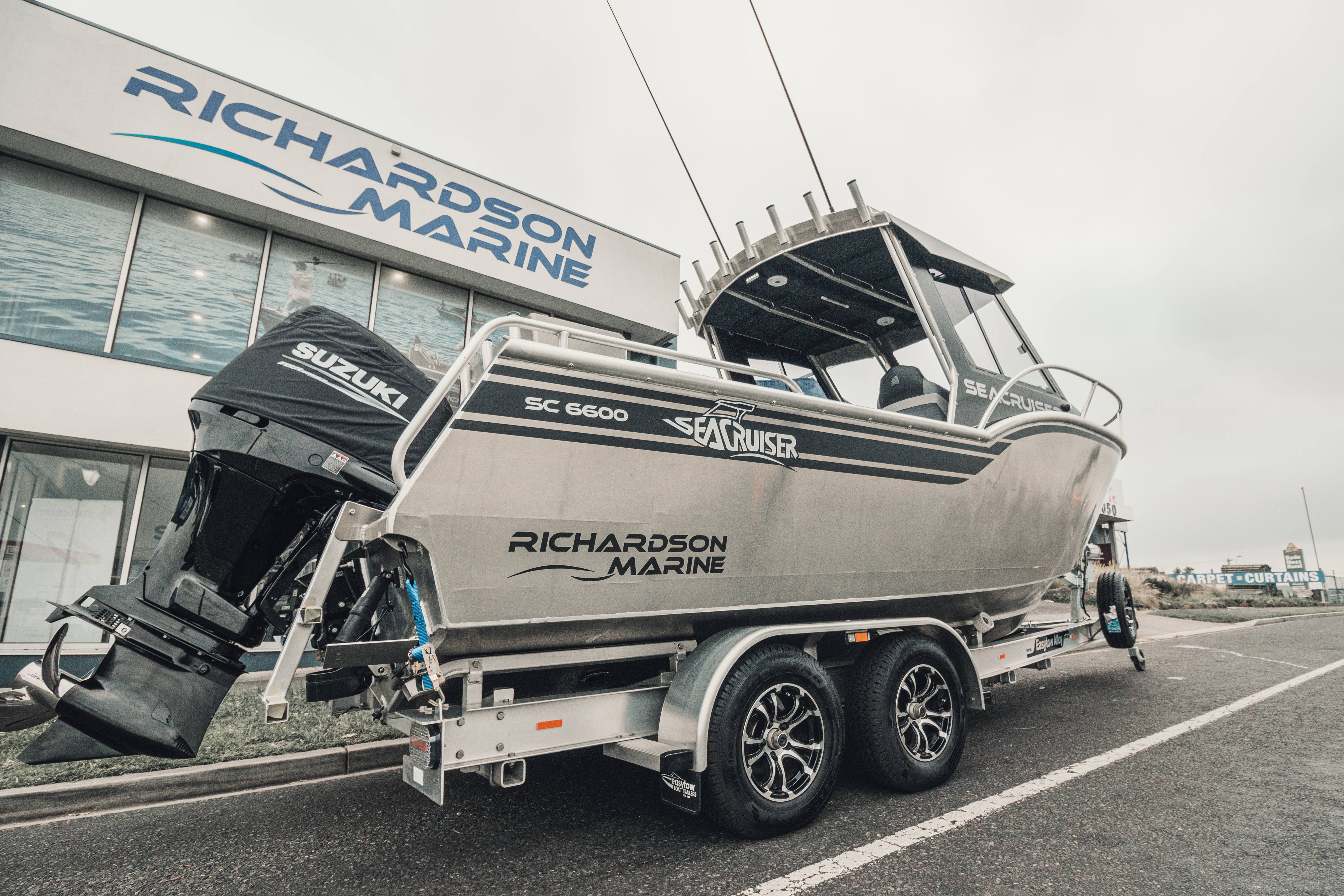 Powered by a robust 250hp Suzuki outboard, the Seacruiser